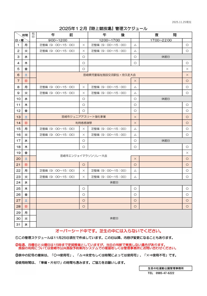 (変更) ">2025年11月『陸上競技場』管理スケジュール